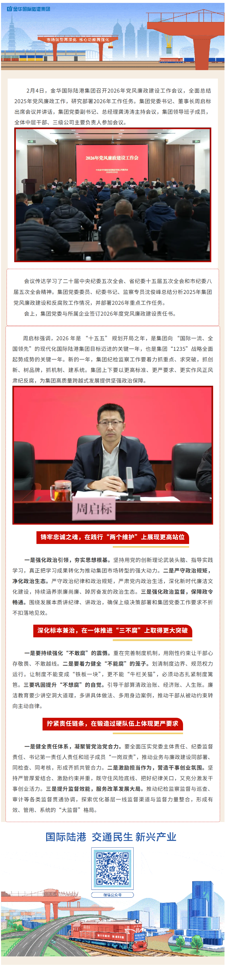 金華國際陸港集團召開2026年黨風廉政建設(shè)工作會議
