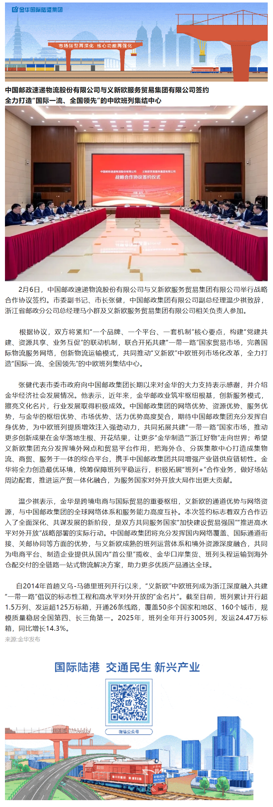 中國(guó)郵政速遞物流股份有限公司與義新歐服務(wù)貿(mào)易集團(tuán)有限公司簽約